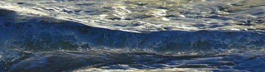 Meeresfluten, Wellen, Brandung, schäumende Gischt – um 180 Grad gedreht und als großformatige Panoramen ausgedruckt. Die Welt auf den Kopf gestellt.