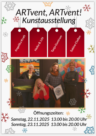 Ob Autodidakt oder mit künstlerischem Abschluss - jede/jeder macht ihre/seine eigene, besondere Kunst. Ein entsprechend breites Spektrum von Acrylmalerei, Mixed Media Malerei, Acryl Pouring, Collagen, Grafik, Fotografie sowie Objektkunst aus Keramik oder Holz wird dargeboten.