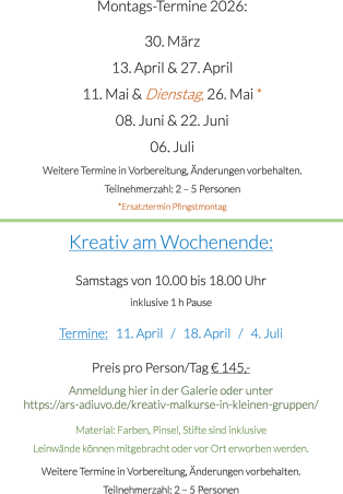 bieten wir Kreativ-Malkurse und Kreativ-Team-Events in kleinen Gruppen an